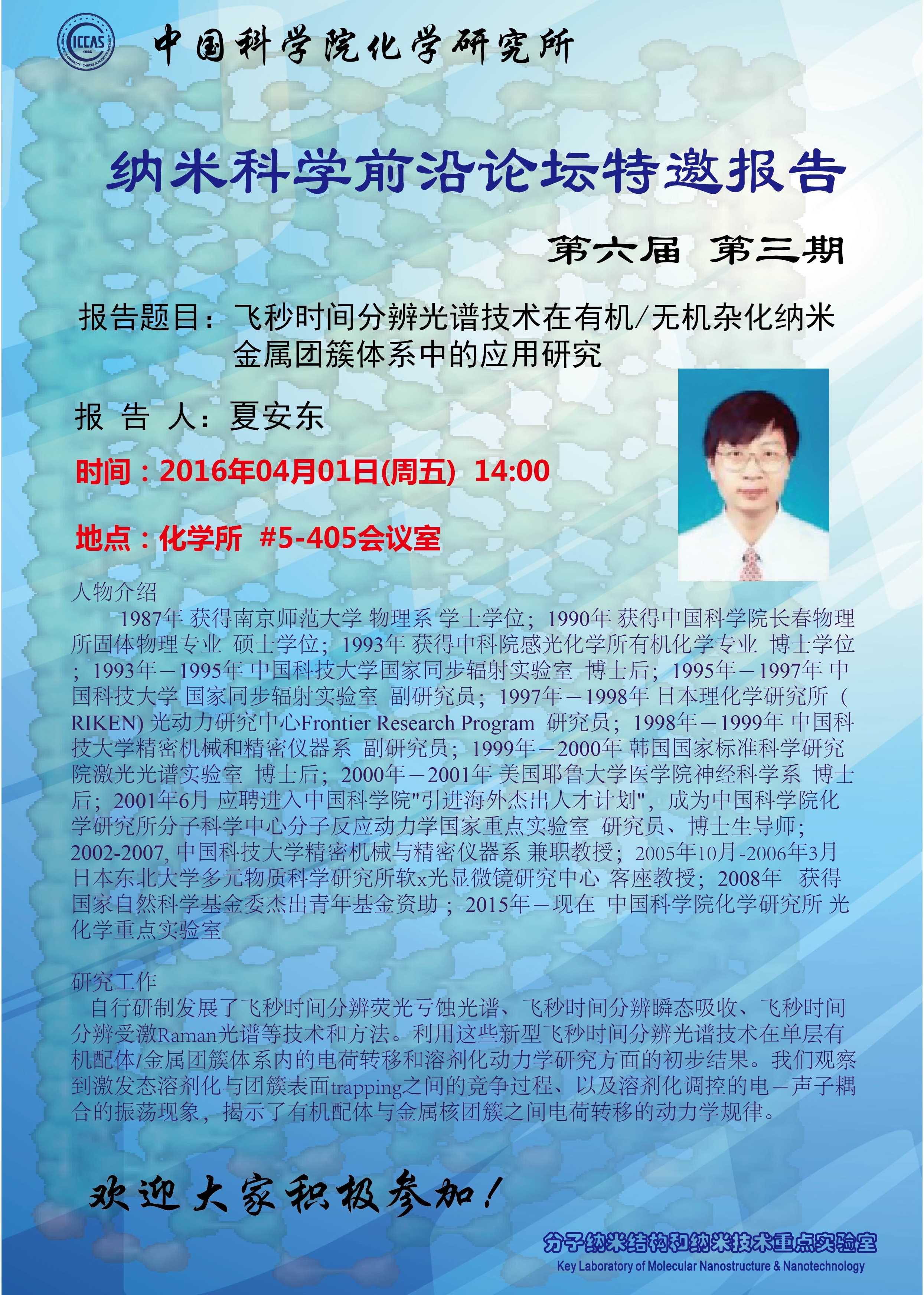 第六届纳米科学前沿论坛第3期--中科院化学所夏安东研究员