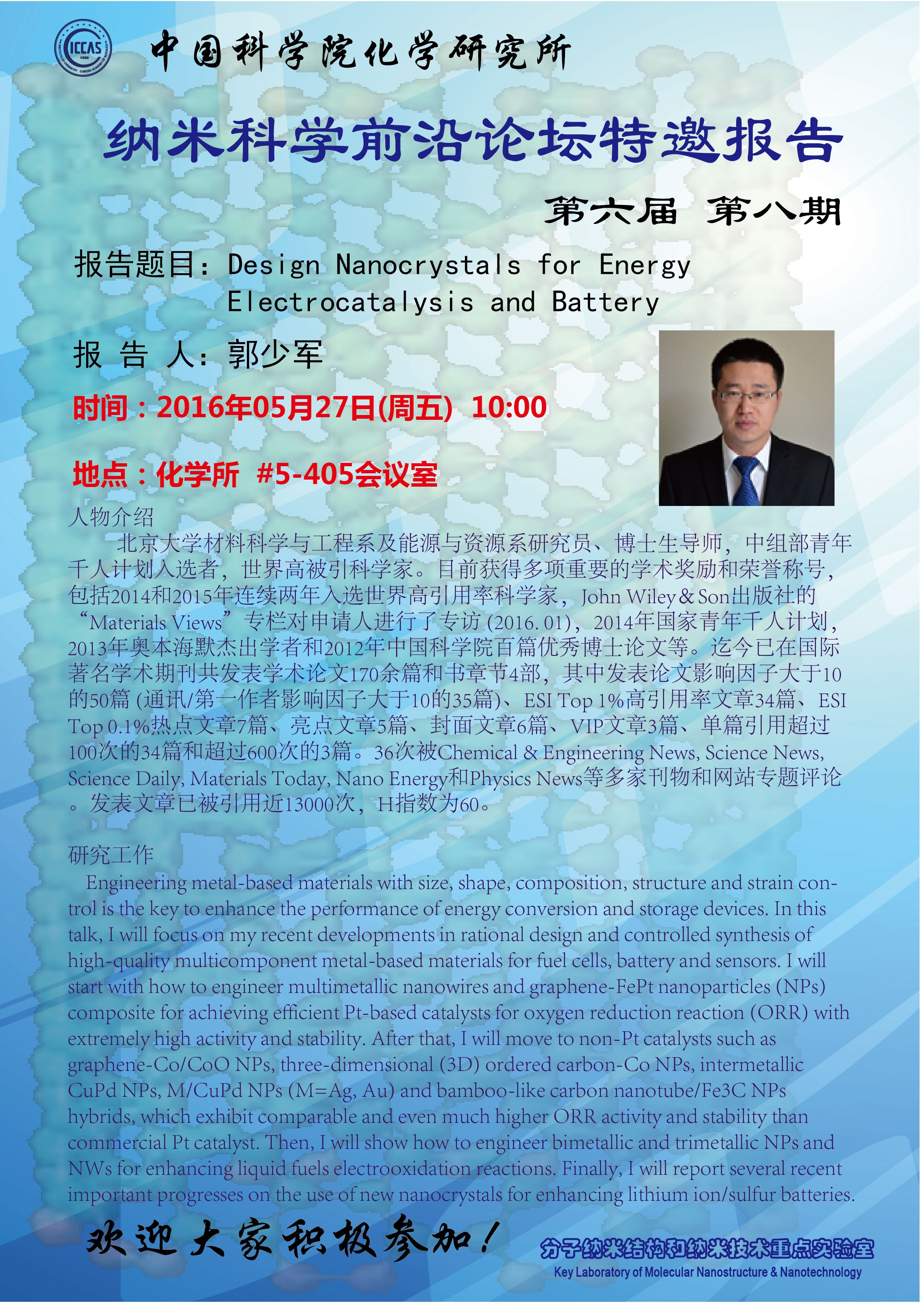 第六届纳米科学前沿论坛第8期--北京大学郭少军教授