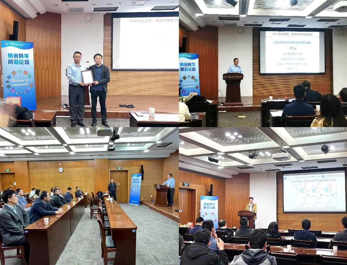 实验室副主任郭玉国研究员为第十四届“纳米科学前沿论坛”致开幕词,并为特邀报告人颁发了聘书。