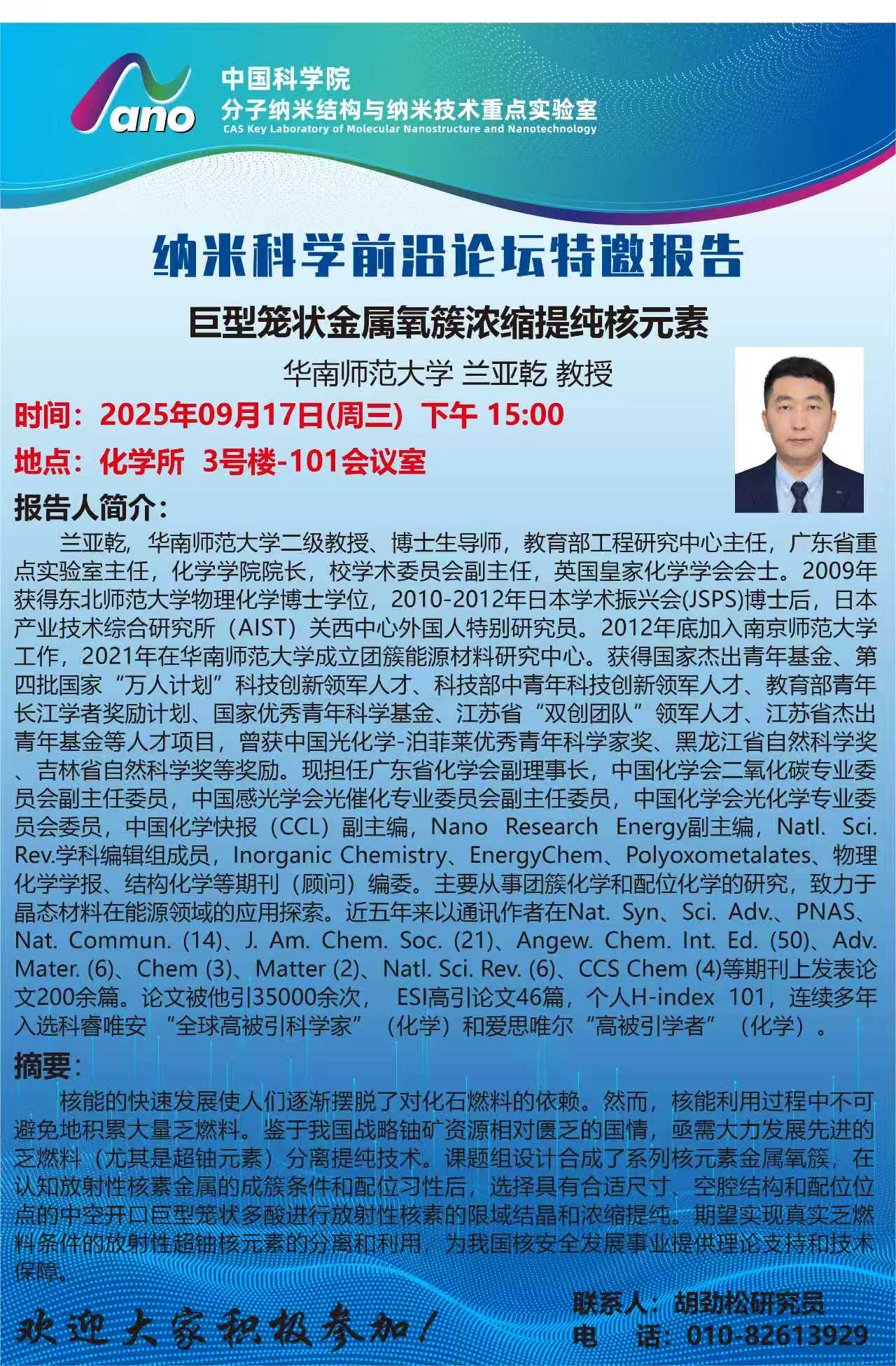 纳米科学前沿论坛兰亚乾教授特邀报告
