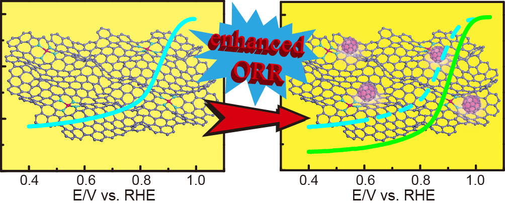 Understanding the origin of high activity of Fe–N–C electrocatalysts in oxygen reduction reaction (ORR) is critical but still challenging for developing efficient sustainable nonprecious metal catalysts in fuel cells and metal–air batteries. Herein, we developed a new highly active Fe–N–C ORR catalyst containing Fe–Nx coordination sites and Fe/Fe3C nanocrystals (Fe@C-FeNC), and revealed the origin of its activity by intensively investigating the composition and the structure of the catalyst and their correlations with the electrochemical performance. The detailed analyses unambiguously confirmed the coexistence of Fe/Fe3C nanocrystals and Fe–Nx in the best catalyst. A series of designed experiments disclosed that (1) N-doped carbon substrate, Fe/Fe3C nanocrystals or Fe–Nx themselves did not deliver the high activity; (2) the catalysts with both Fe/Fe3C nanocrystals and Fe–Nx exhibited the high activity; (3) the higher content of Fe–Nx gave the higher activity; (4) the removal of Fe/Fe3C nanocrystals severely degraded the activity; (5) the blocking of Fe–Nx downgraded the activity and the recovery of the blocked Fe–Nx recovered the activity. These facts supported that the high ORR activity of the Fe@C-FeNC electrocatalysts should be ascribed to that Fe/Fe3C nanocrystals boost the activity of Fe–Nx. The coexistence of high content of Fe–Nx and sufficient metallic iron nanoparticles is essential for the high ORR activity. DFT calculation corroborated this conclusion by indicating that the interaction between metallic iron and Fe–N4 coordination structure favored the adsorption of oxygen molecule. These new findings open an avenue for the rational design and bottom-up synthesis of low-cost highly active ORR electrocatalysts.