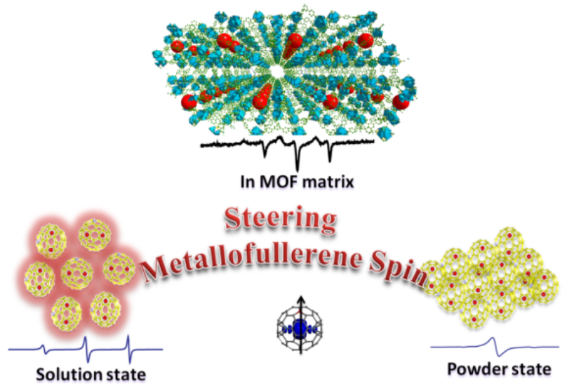 将顺磁性的Sc3C2@C80和Y2@C79N分子填充到金属有机骨架化合物MOF-177晶体的孔笼中,发现了MOF孔笼与金属富勒烯之间较强的主客体作用(Nanoscale, 2018;等)。这种孔笼的限域效应影响了分子的运动和取向,进而调控... |